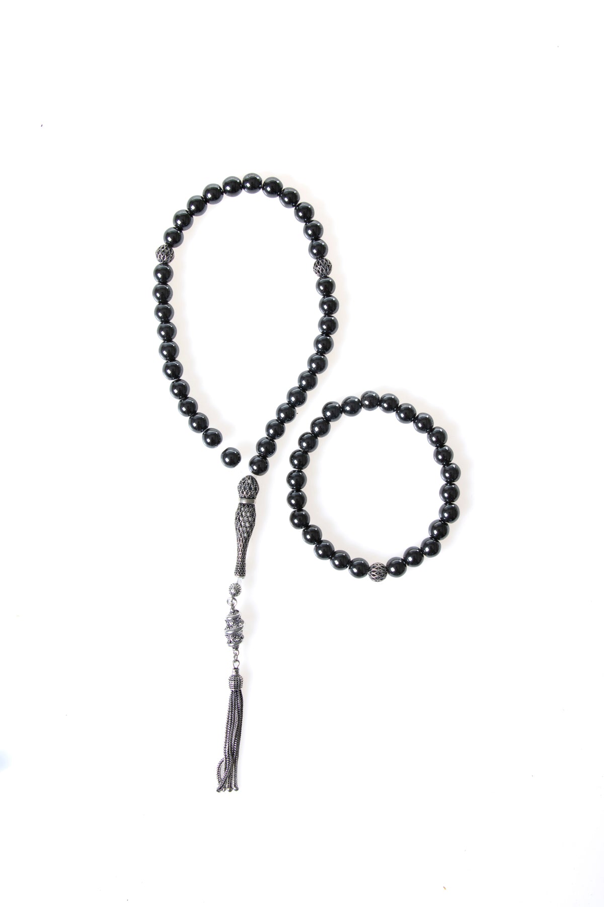 Sertifikalı Hematit 925 Ayar Gümüş 8 mm İmameli Tesbih & Bileklik Seti