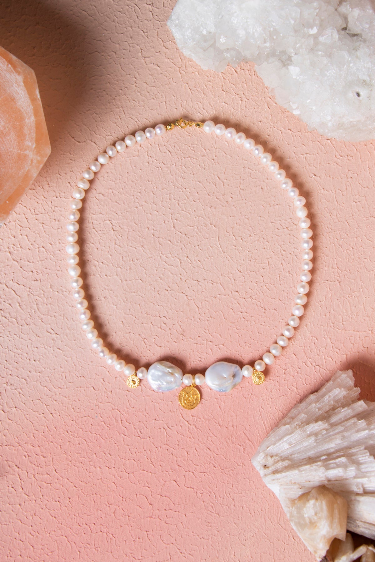 İnci Gümüş Lale Aparatlı Doğal Taş Kolye