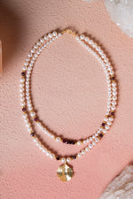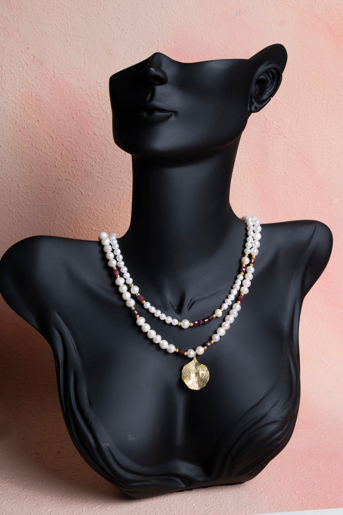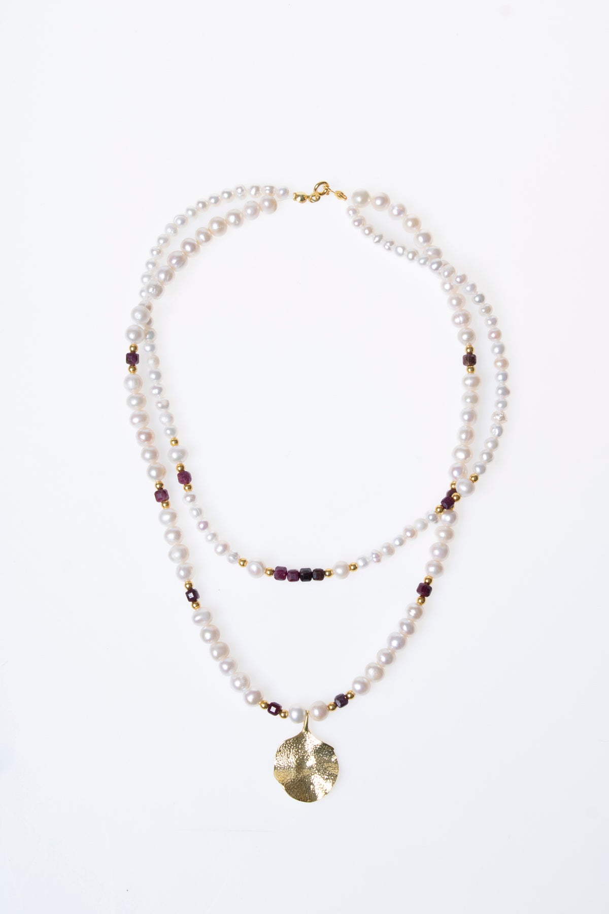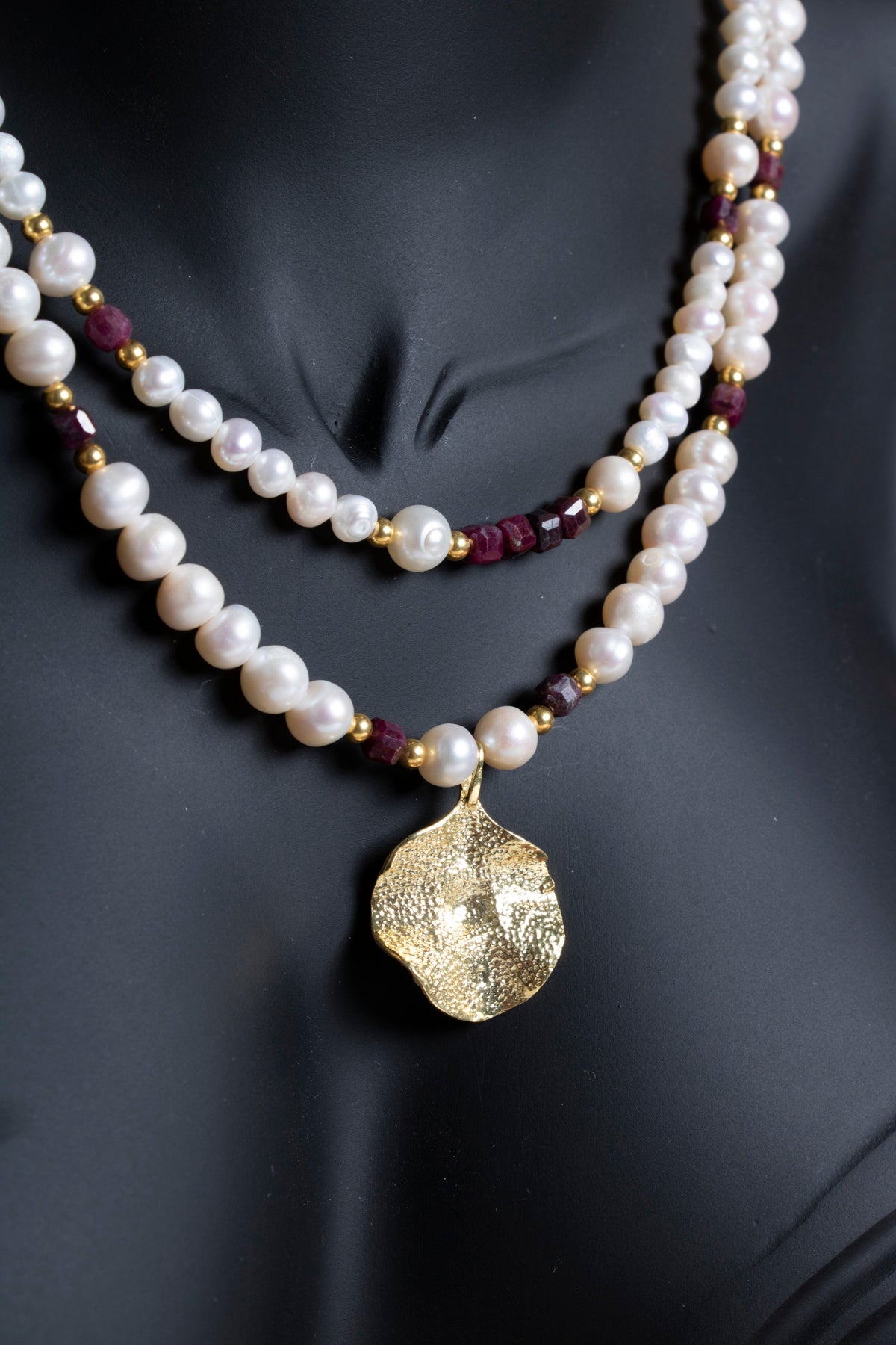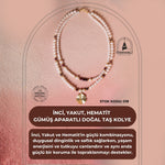 İnci, Yakut, Hematit Gümüş Aparatlı Doğal Taş Kolye