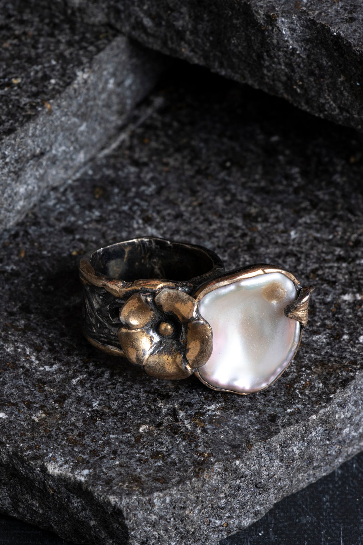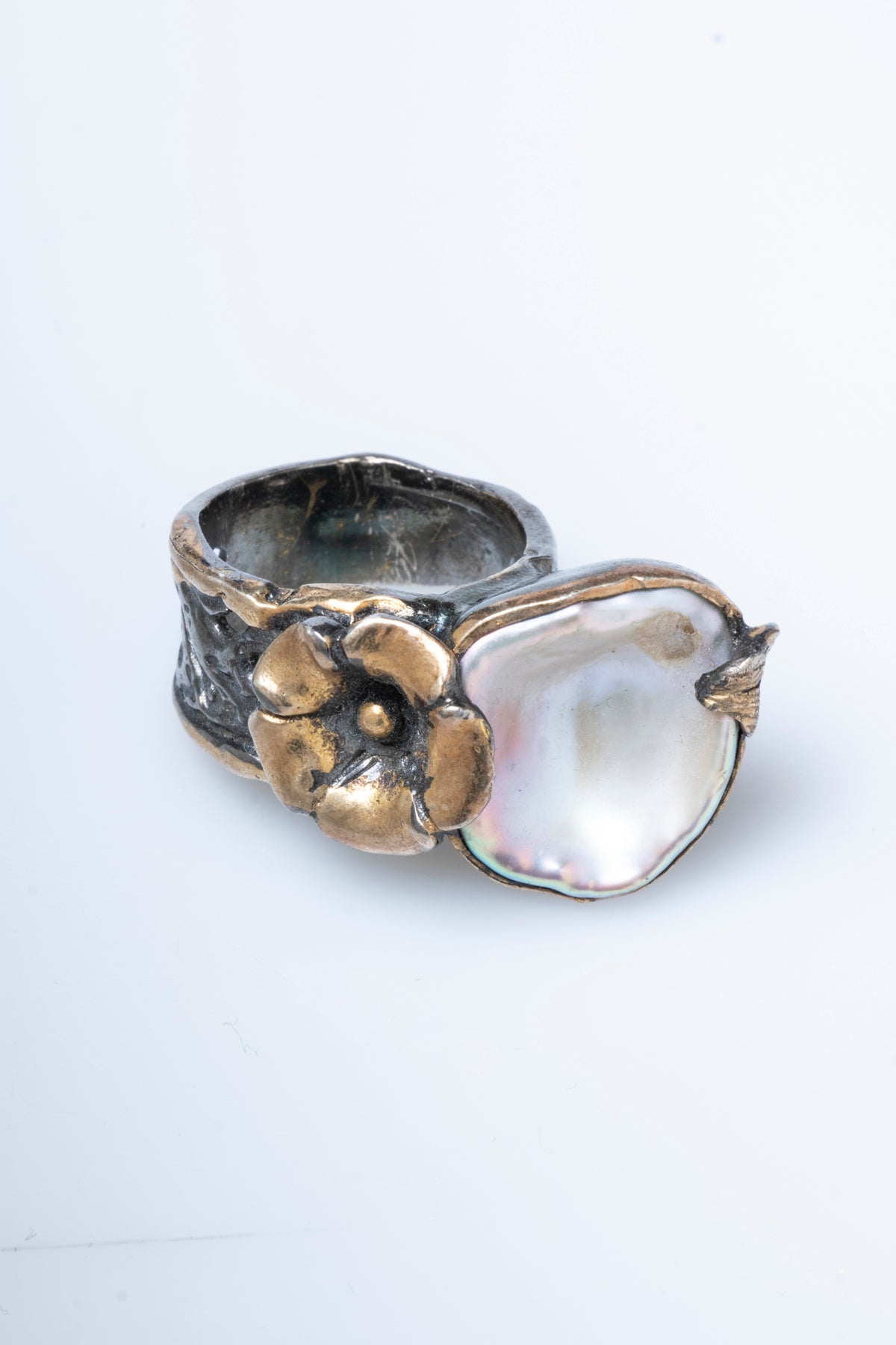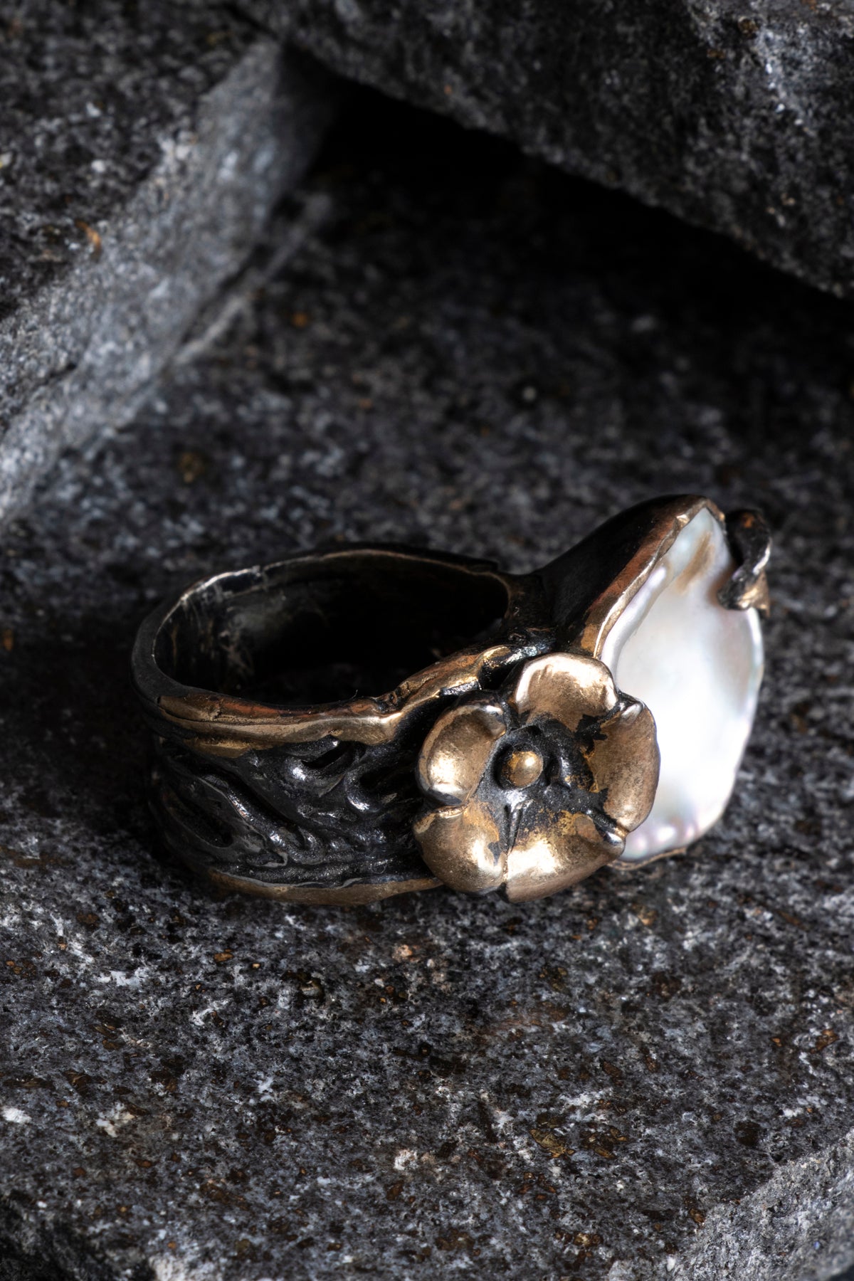 Sertifikalı İridyumlu Gümüş İnci Özel Tasarım Yüzük