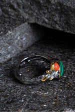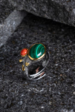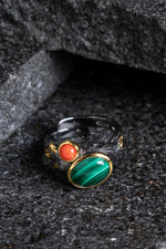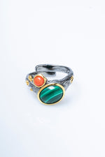Sertifikalı İridyumlu Mercan, Malahit Özel Tasarım Gümüş Yüzük (SK:003)