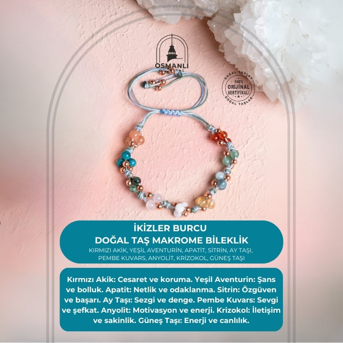 Sertifikalı İkizler Burcu Doğal Taş Makrome Bileklik