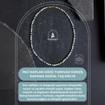 Sertifikalı İnci Kaplan Gözü Turkuaz Gümüş Kapama Doğal Taş Kolye
