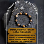 Sertifikalı Jasper, Obsidyen, Hematit Doğal Taş Makrome Bileklik