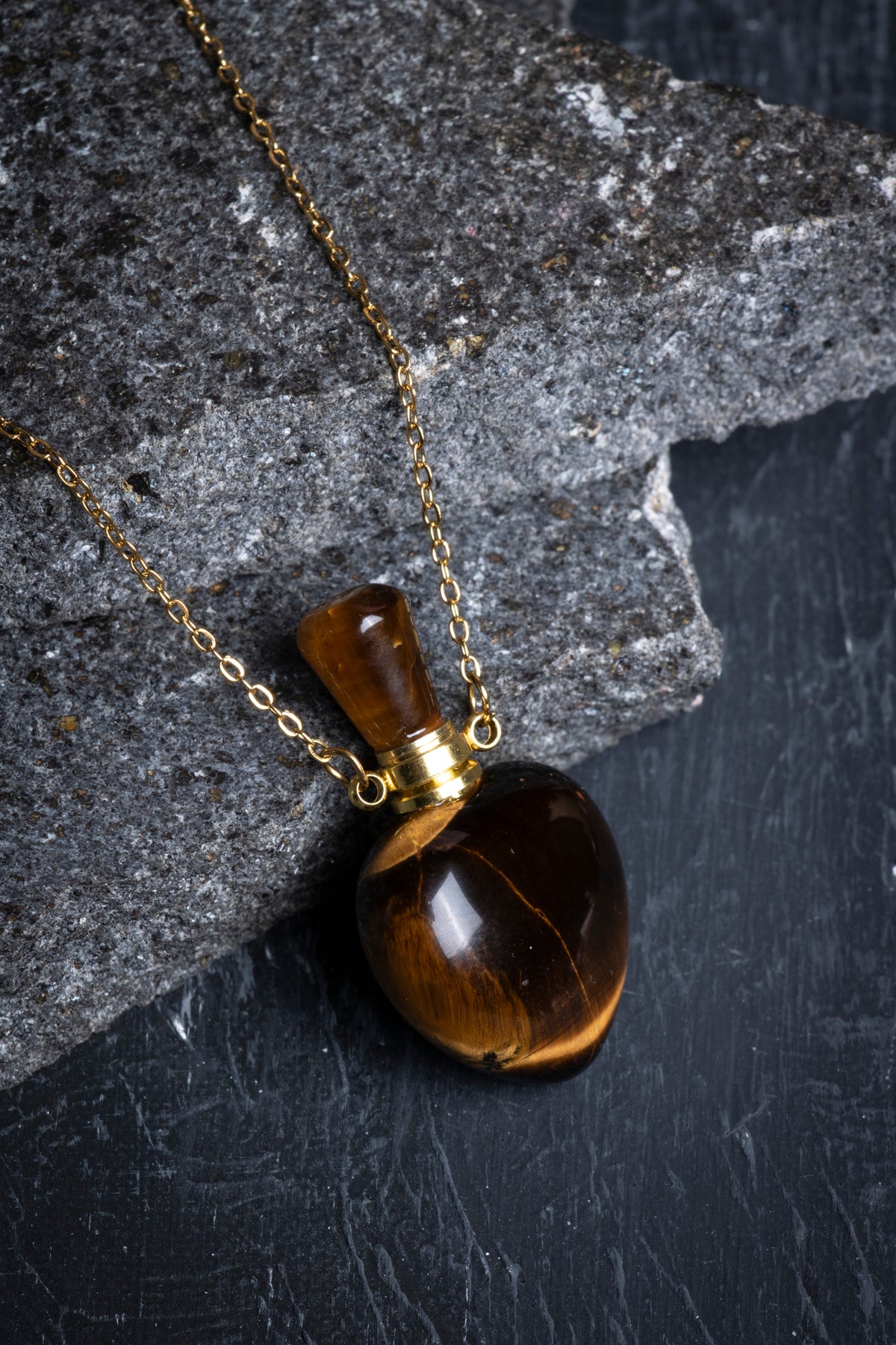 Sertifikalı Kaplan Gözü Doğal Taş Esans Şişesi Kolye