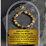 %100 doğal ve sertifikalı Kaplan Gözü taşlarıyla hazırlanan bileklik, el işçiliğiyle örülmüş makrome tasarımı ve zarif gümüş aparat detayı sayesinde hem sağlam hem estetik bir yapı sunar. Ayarlanabilir yapısıyla her bileğe rahatça uyum sağlar.