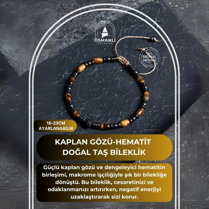 Sertifikalı Kaplan Gözü, Hematit Doğal Taş Makrome Bileklik