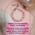 Sertifikalı Kristal Kuvars, Hematit Fasetli Doğal Taş Makrome Bileklik