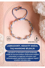 Mistik koruma, sezgisel güç ve güçlü topraklanmayı bileğinizde birleştirin. Labradorit'in büyülü ışıltısı ve Hematit'in sağlamlığı, dayanıklı Makrome Örgü ile birleşerek bu özel bilekliği oluşturuyor. Bu bileklik, size hem ruhsal farkındalık hem de günlük yaşamda fiziksel denge sağlayan güçlü bir destekçinizdir.