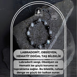 Sertifikalı Labradorit, Obsidyen, Hematit Doğal Taş Makrome Bileklik