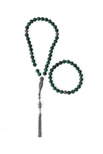 Sertifikalı Malahit 925 Ayar Gümüş 8 mm İmameli Tesbih & Bileklik Seti