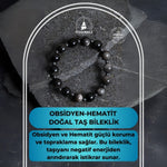 Sertifikalı Obsidyen, Hematit Doğal Taş Bileklik