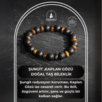 Sertifikalı Orijinal Şungit Dar Kesim Kaplan Gözü Doğal Taş Bileklik