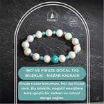 Sertifikalı Osmanlı İnci ve Firuze Doğal Taş Bileklik – Nazar Kalkanı