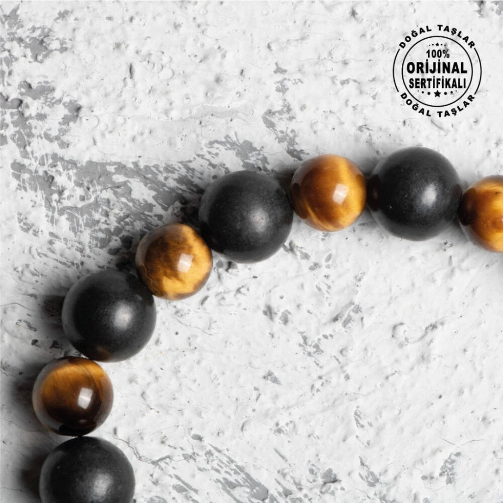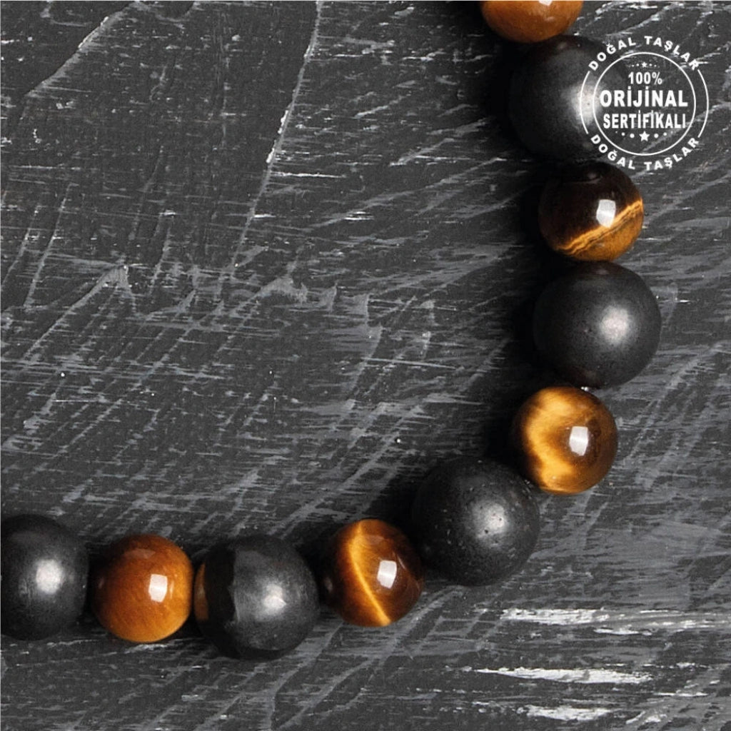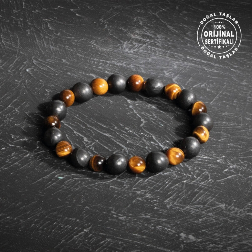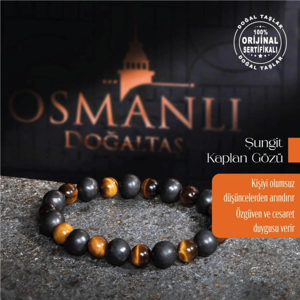 Sertifikalı Osmanlı Şungit ve Kaplan Gözü Taş Bileklik -Cesaret