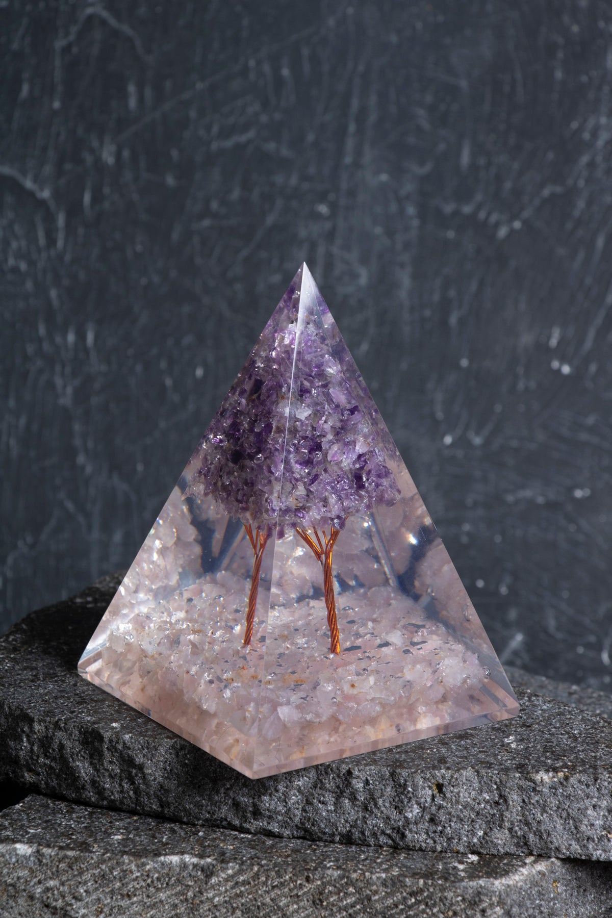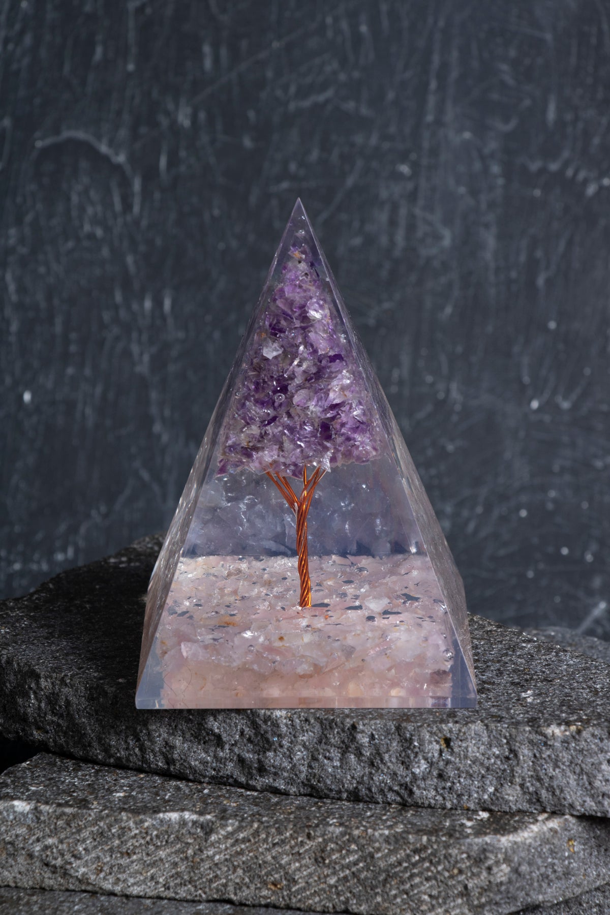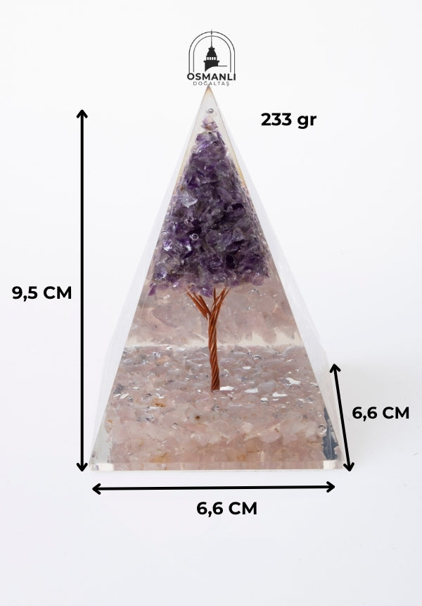 Sertifikalı Pembe Kuvars & Ametist Ağaçlı Piramit