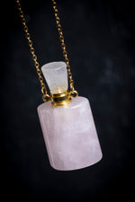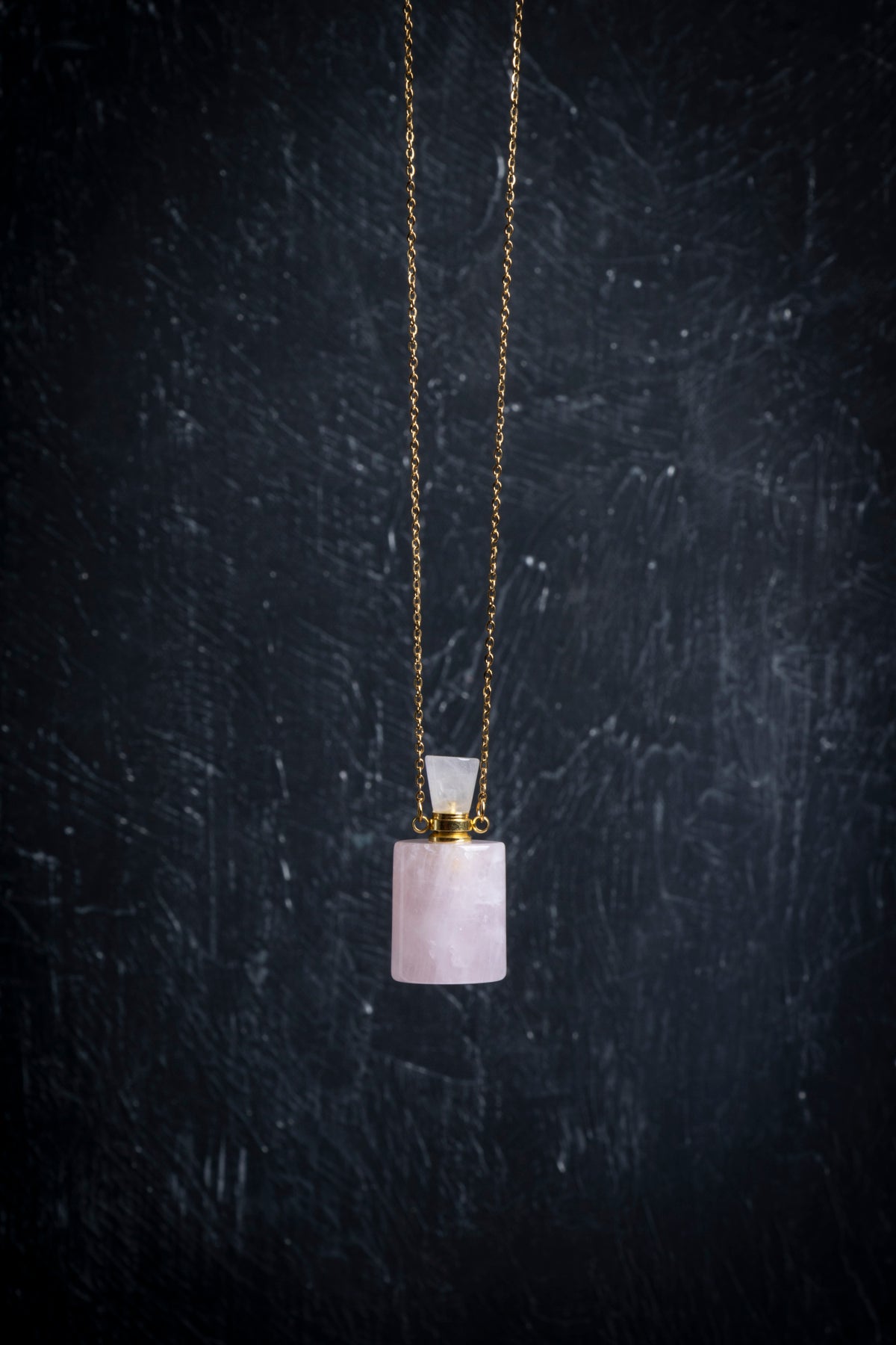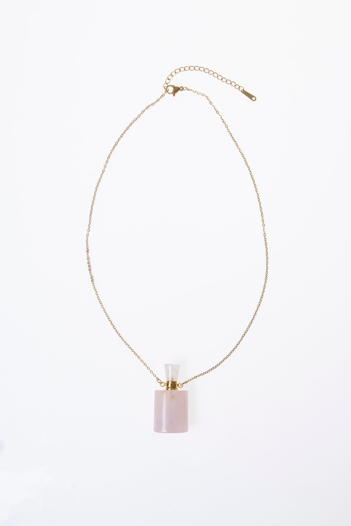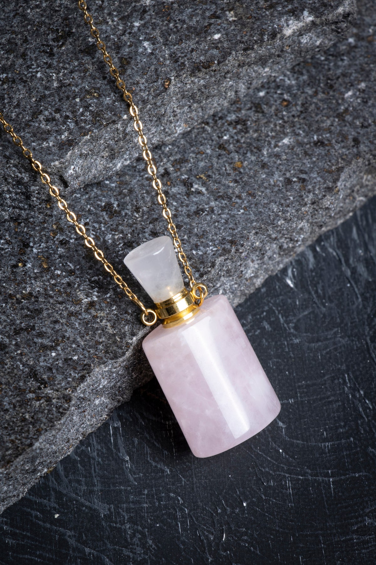 Sertifikalı Pembe Kuvars Doğal Taş Esans Şişesi Kolye