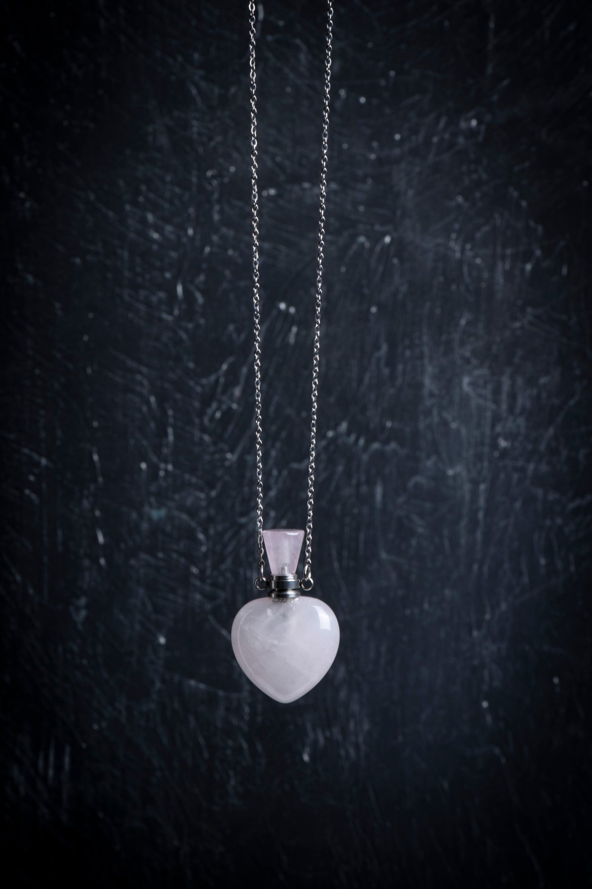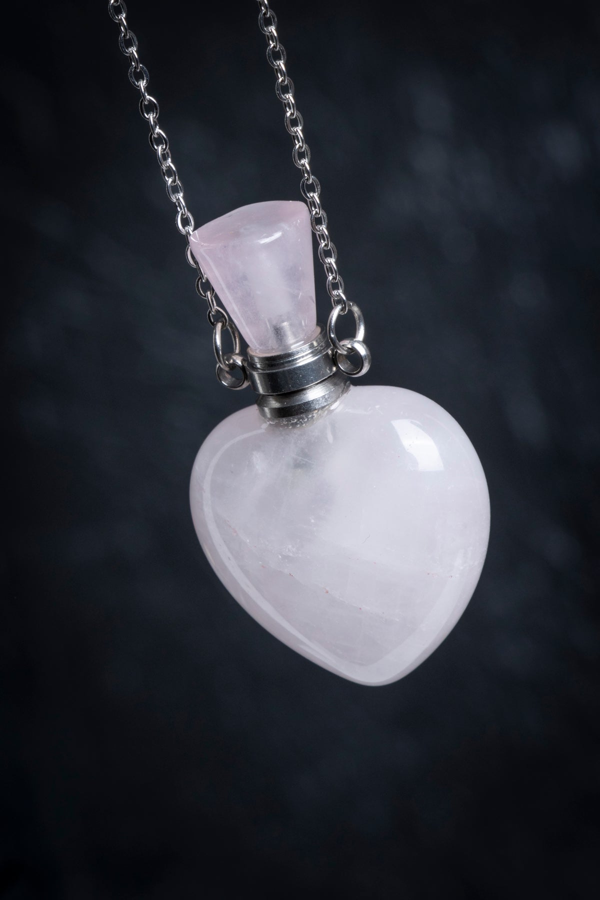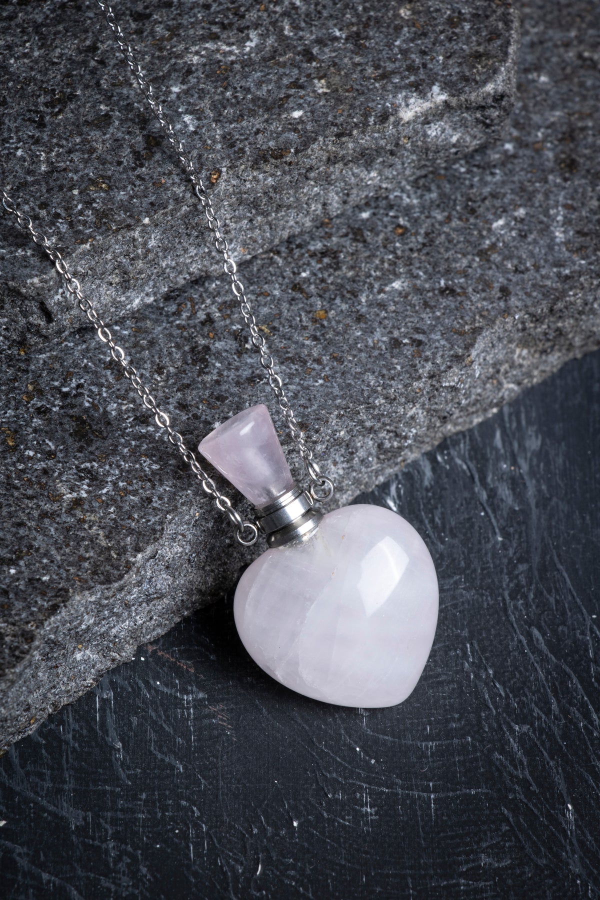 Sertifikalı Pembe Kuvars Doğal Taş Esans Şişesi Kolye