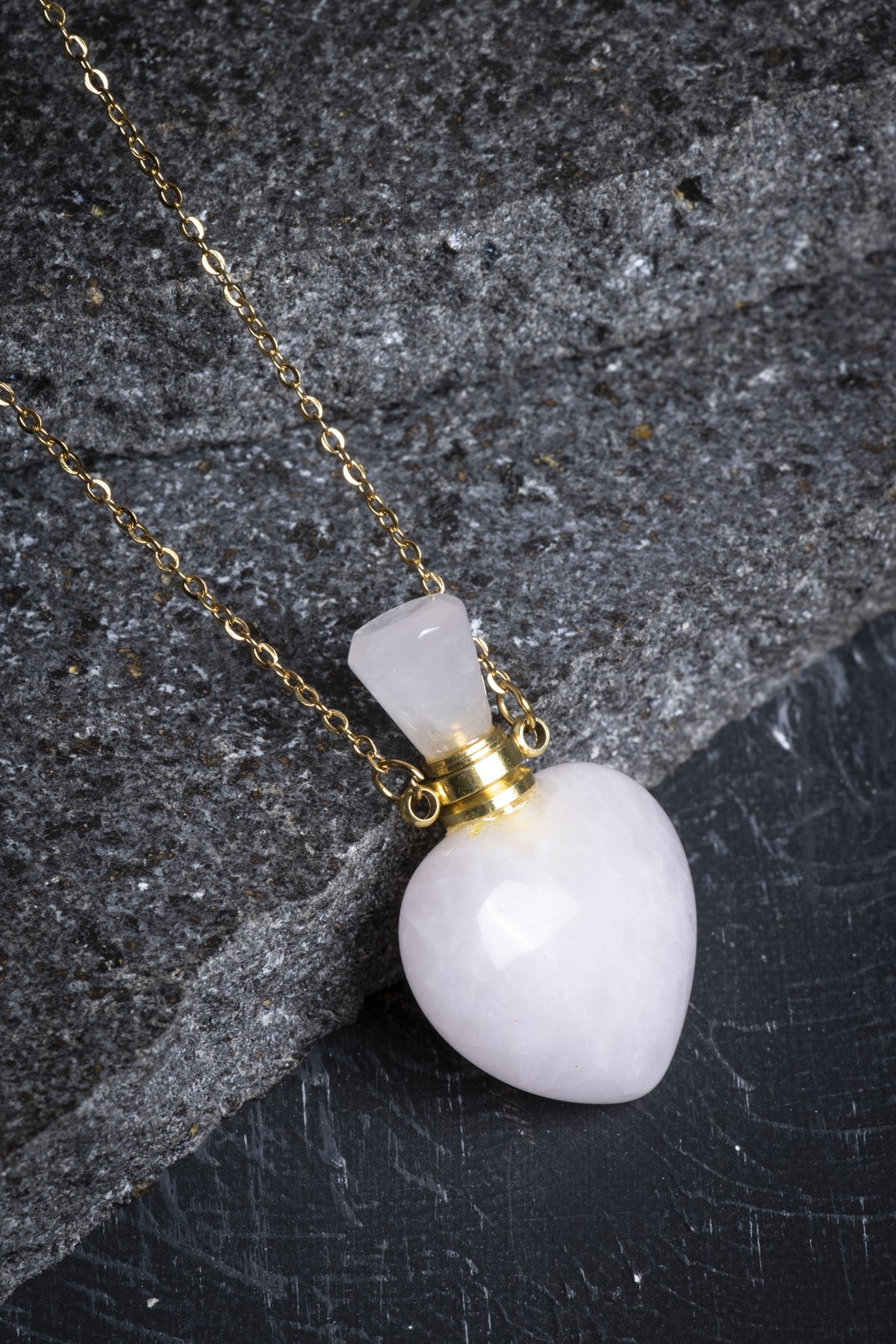 Sertifikalı Pembe Kuvars Doğal Taş Esans Şişesi Kolye