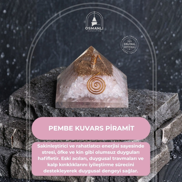 - Doğanın saf güzelliğini yansıtan pembe kuvars piramit, evinizin veya ofisinizin dekorasyonuna doğal bir dokunuş katıyor. - Tek parça halinde sunulan bu ürün, minimalist ve sade bir estetik arayanlar için ideal bir seçim. - Yüksek kaliteli doğal taş malzemesiyle üretilmiş olup, uzun ömürlü kullanım vaat ediyor. - Türkiye menşeli olmasıyla yerel üretim destekleniyor ve ürünün kalitesine güven duyuluyor.