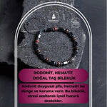 Sertifikalı Rodonit, Hematit Gümüş Aparat Doğal Taş Makrome Bileklik
