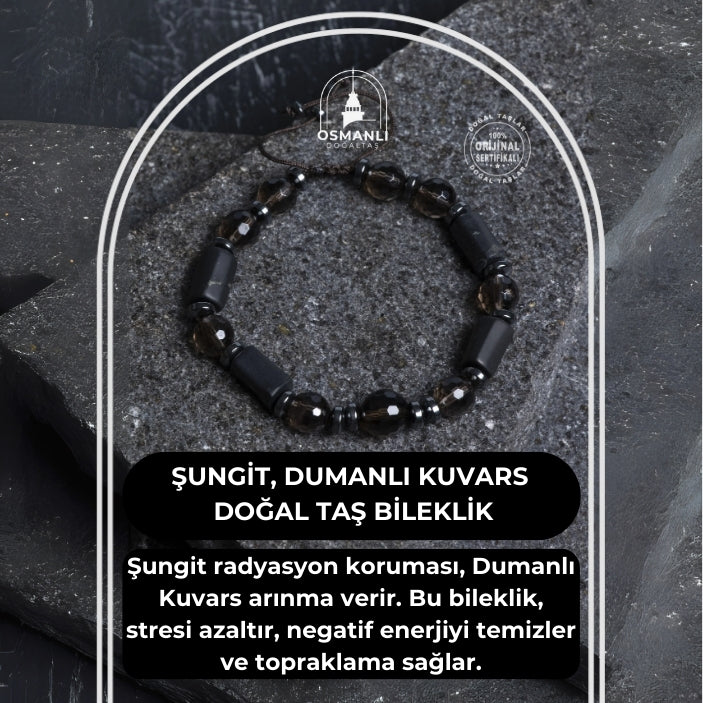 Sertifikalı Şungit, Dumanlı Kuvars Fasetli Doğal Taş Bileklik