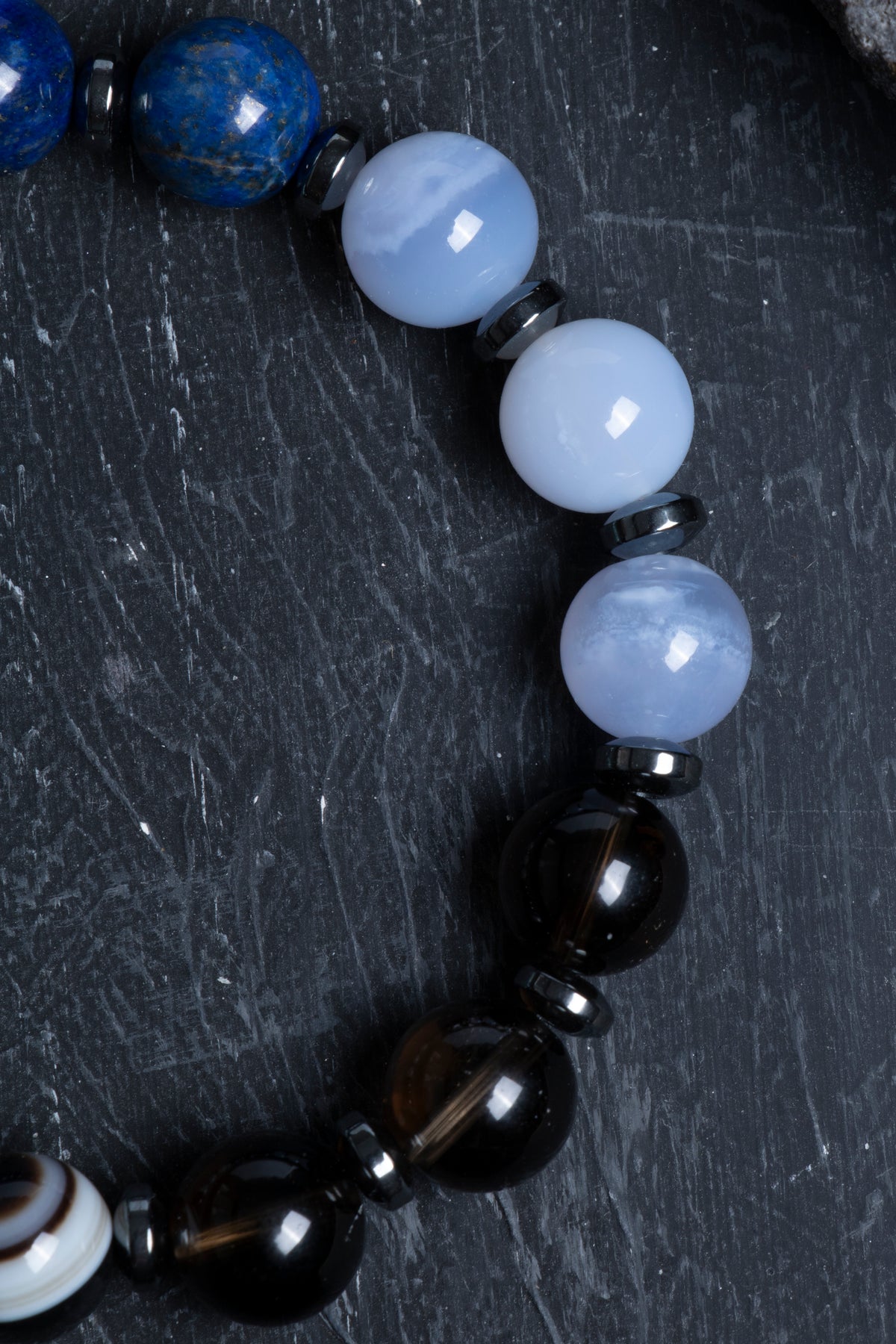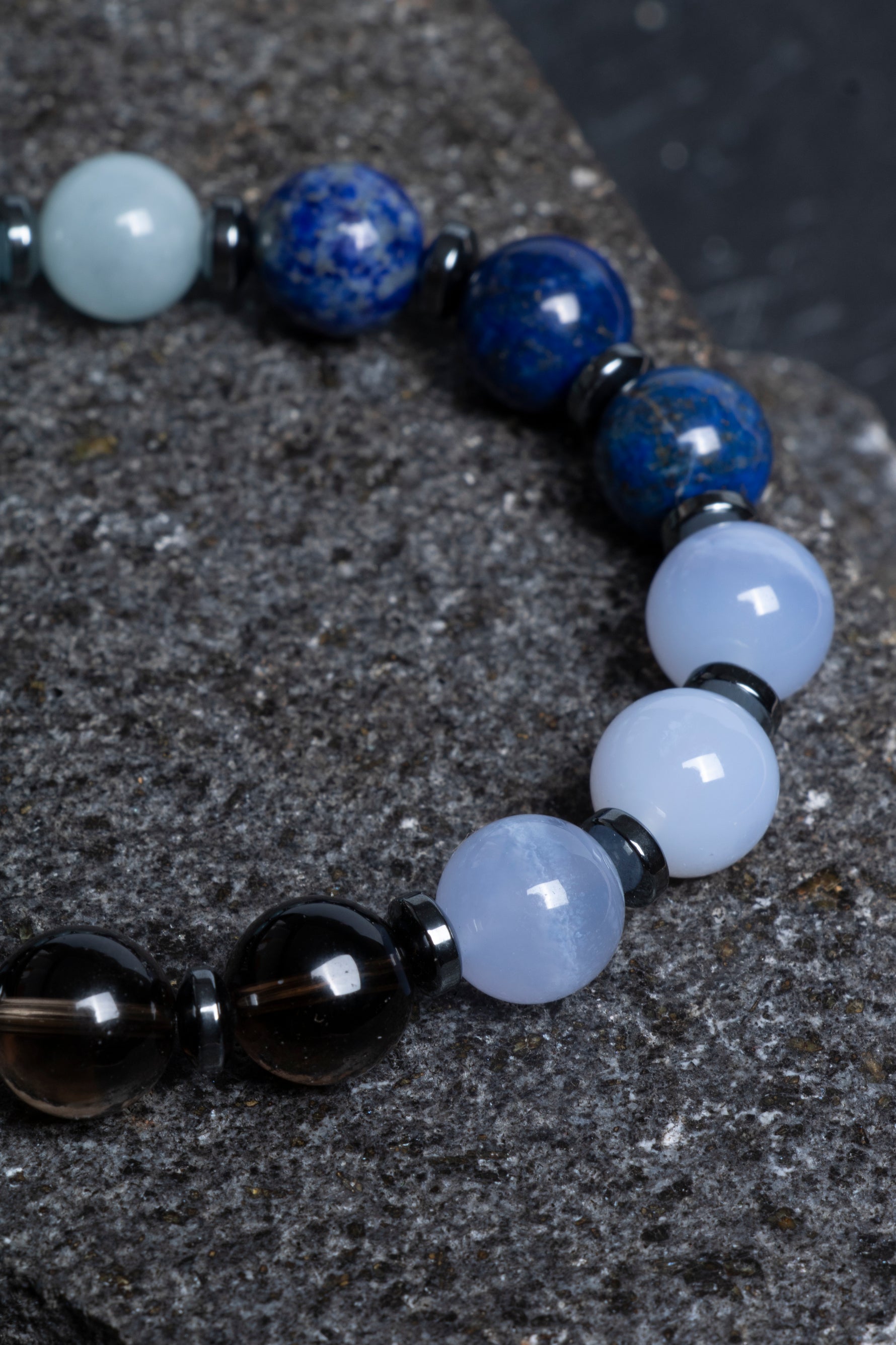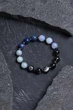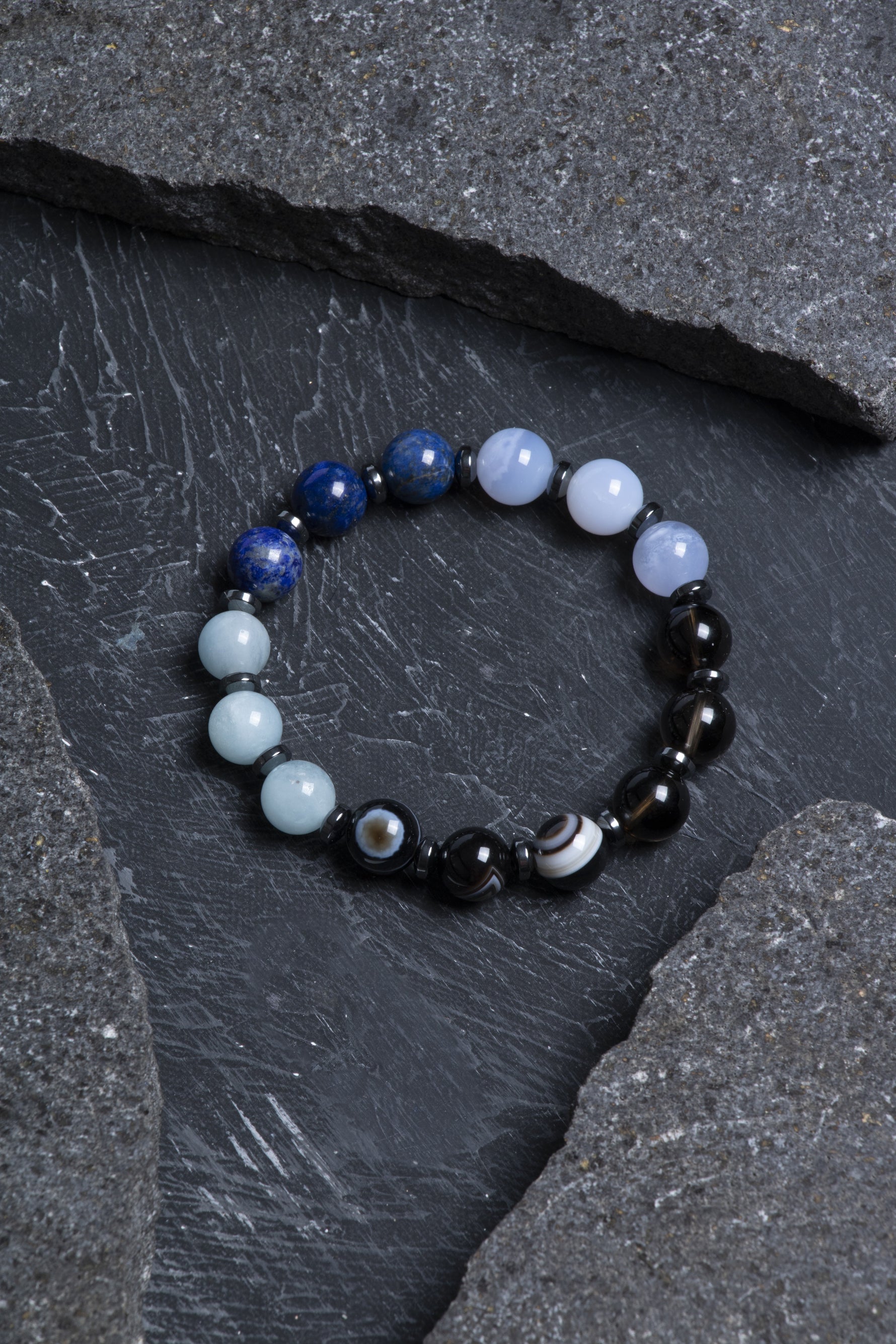 Bu özel erkek bilekliği, Terazi burcunun adalet duygusu, zarif yaklaşımı ve dengeli yapısına hitap eden doğal taşlarla tasarlandı: