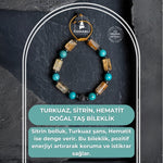 Sertifikalı Turkuaz, Sitrin, Hematit Doğal Taş Makrome Bileklik