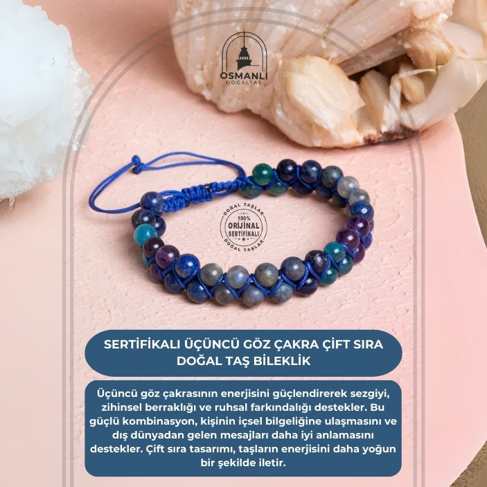 Sertifikalı Üçüncü Göz Çakra Çift Sıra Doğal Taş Makrome Bileklik