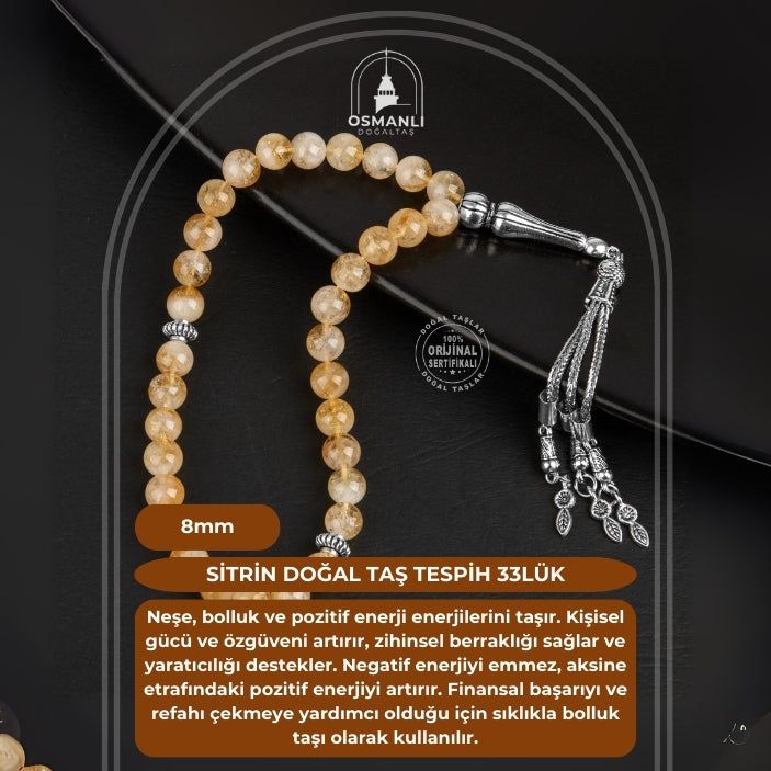 Sitrin Doğal Taş Tesbih 33lük - 8mm