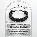 Siyah Turmalin 8mm Çift Sıra Makrome Doğal Taş Bileklik