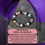 Terazi Burcu Bileklik Akuamarin, Dumanlı Kuvars, Güneş Taşı, Krizokol, Obsidyen, Siyah Turmalin