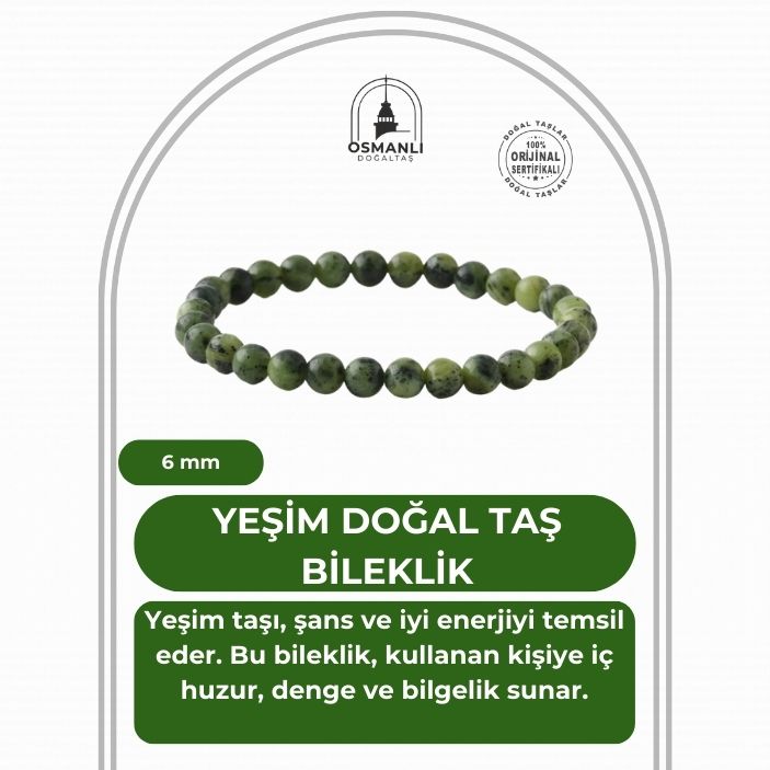 Yeşim Taşı Özellikleri: Nazarı önler ve varsa giderir. Bilge bakış açısı kazandırır. Kendi kendine yeterli olmayı sağlar. Fikir üretmeyi destekler. Öz benliği açığa çıkarır. Toksinleri giderir.