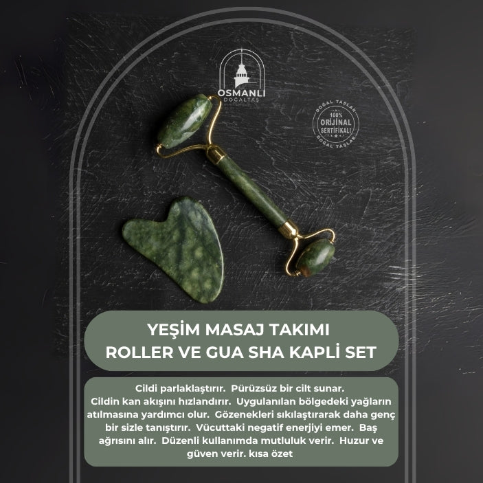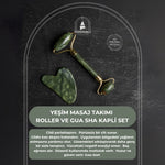 Yeşim Taşı Masaj Takımı - Roller ve Gua Sha Kapli Set